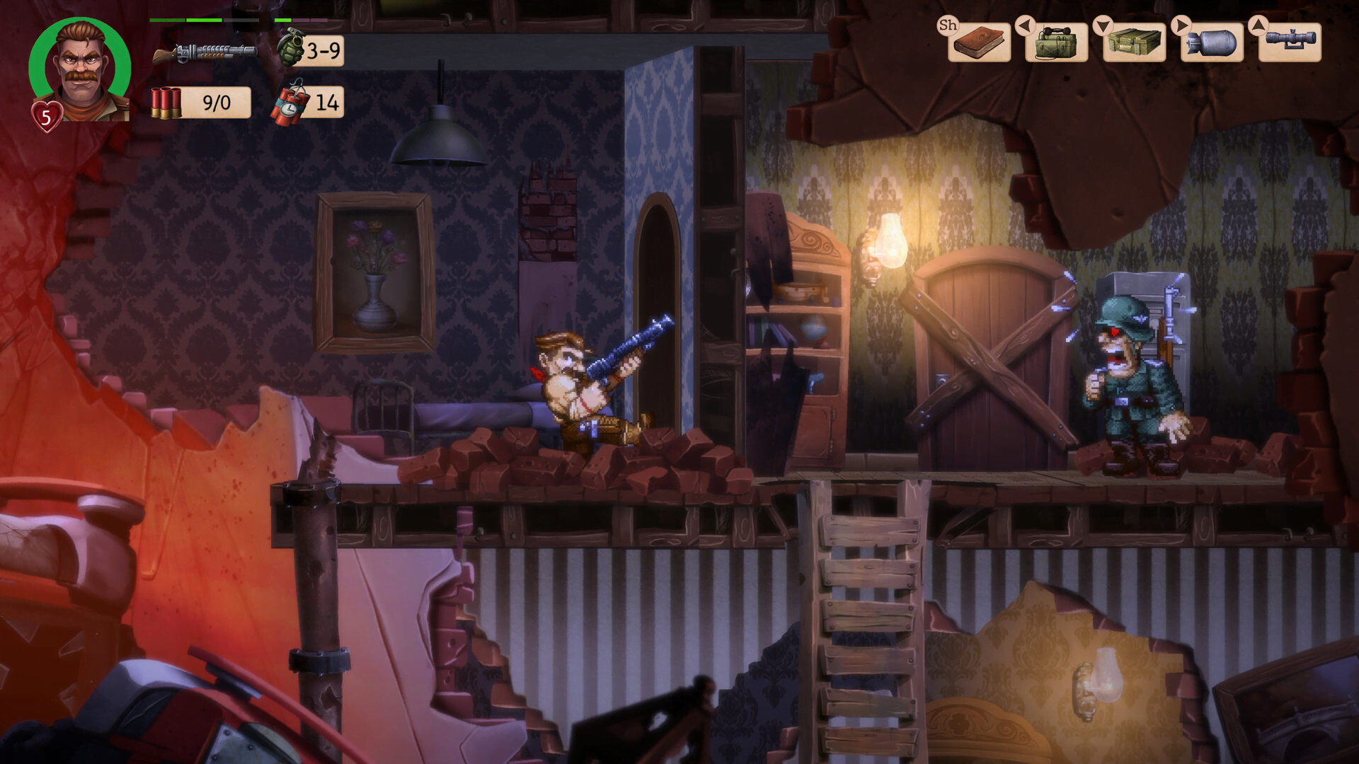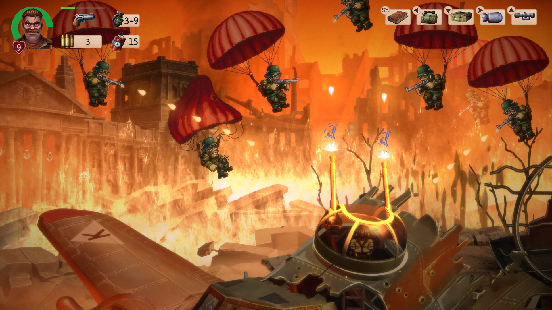 In the last days of World War II, lead a suicide mission to hunt down the enemy leaders, steal their experimental technology and recover the art pieces and relics. A combination of frenetic action, tactical missions and an explosive run & gun platforming adventure.