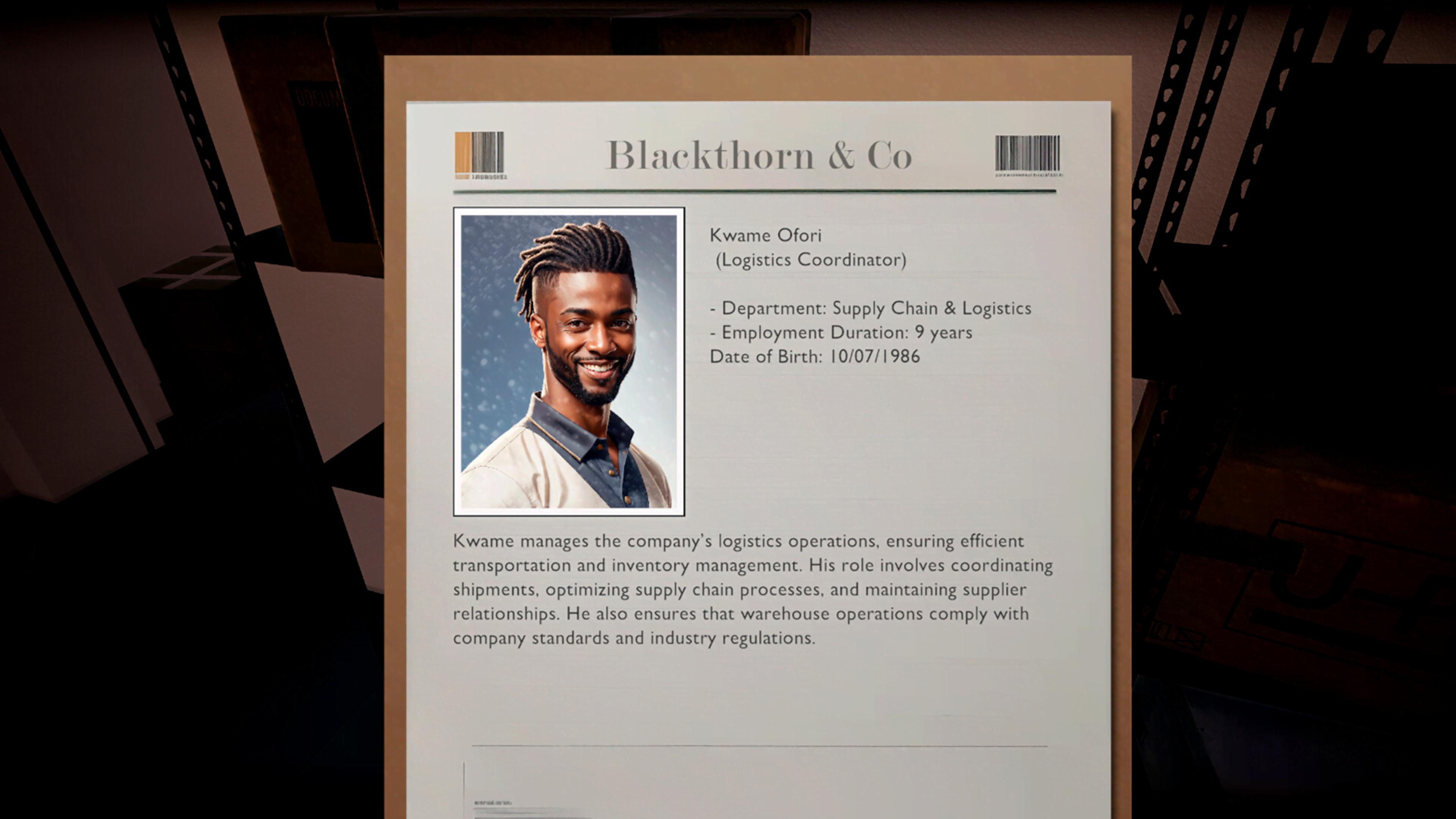 - Tense atmosphere: Blackthorn offices are a changing, disorienting environment where reality distorts, and every step reveals new threats and secrets.